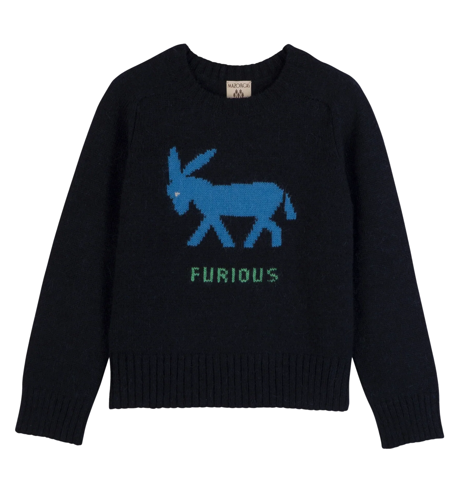 Pierrot est tricoté façon grand-mère: intarsia ÂNE "FURIOUS" dans une épaisseur moyenne - jauge 7